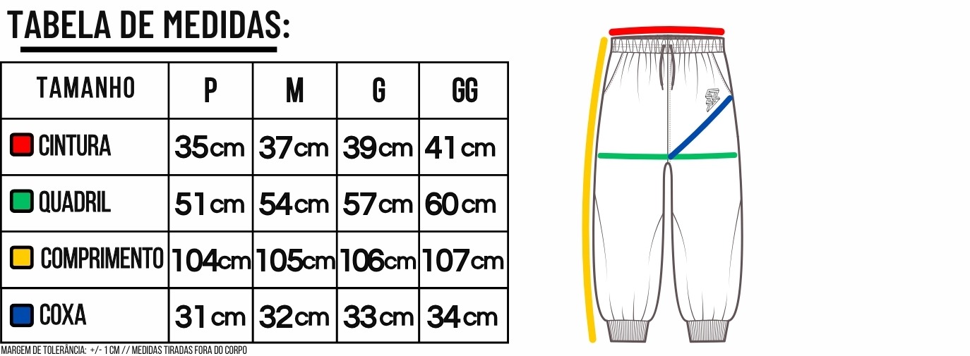 Para escolher o seu tamanho entre as calças de moletom, use uma fita para medir e confira a tabela de medidas disponível na página para garantir o ajuste perfeito.